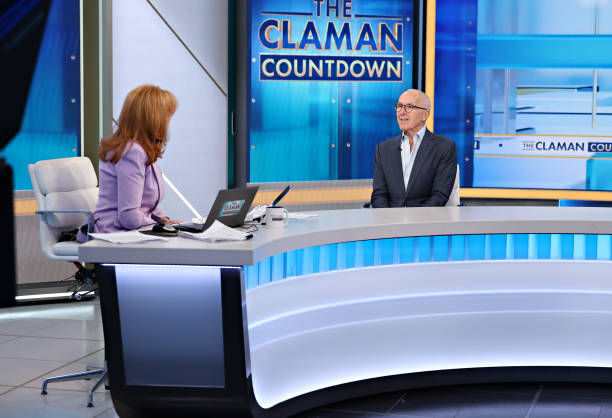 NEW YORK, NEW YORK – JANUARY 13: Host Liz Claman speaks with Frank McCourt during his visit to “The Claman Countdown” at Fox Business Network Studios on January 13, 2025 in New York City. (Photo by Cindy Ord/Getty Images)